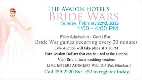 i104.3 AND BRIDE WARS AT THE AVALON HOTEL HAVE YOUR CHANCE TO WIN A GIRLS NIGHT OUT PRIZE PACK!WIN $200 IN AVALON DOLLARS TO USE AT BRIDE WARS ON FEBRUARY 22; A ROOM AT THE AVALON HOTEL FOR THE B...