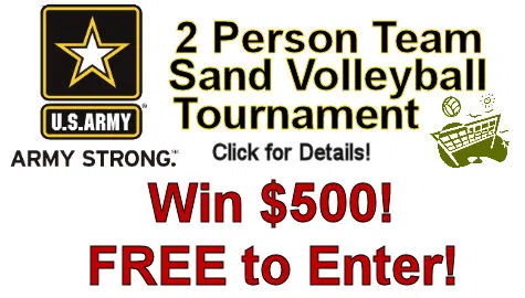 i1043 AND THE US ARMY INVITE YOU TO THE US ARMY’S SAND VOLLEYBALL TOURNAMENT ON BEACH 6 AT PRESQUE ISLE STATE PARK, SATURDAY JULY 12!THE TOURNAMENT IS OPEN TO ANYONE 18 YEARS OR OLDER,...